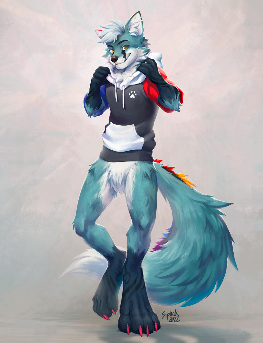 Mirrored full body (colored) | Adds a colored full body view (chibi or normal) using another full body view (be it the base one, or another one) as a base. Useful to showcase the character from the opposite point of view, or to show them with different clothing. | +50EUR |