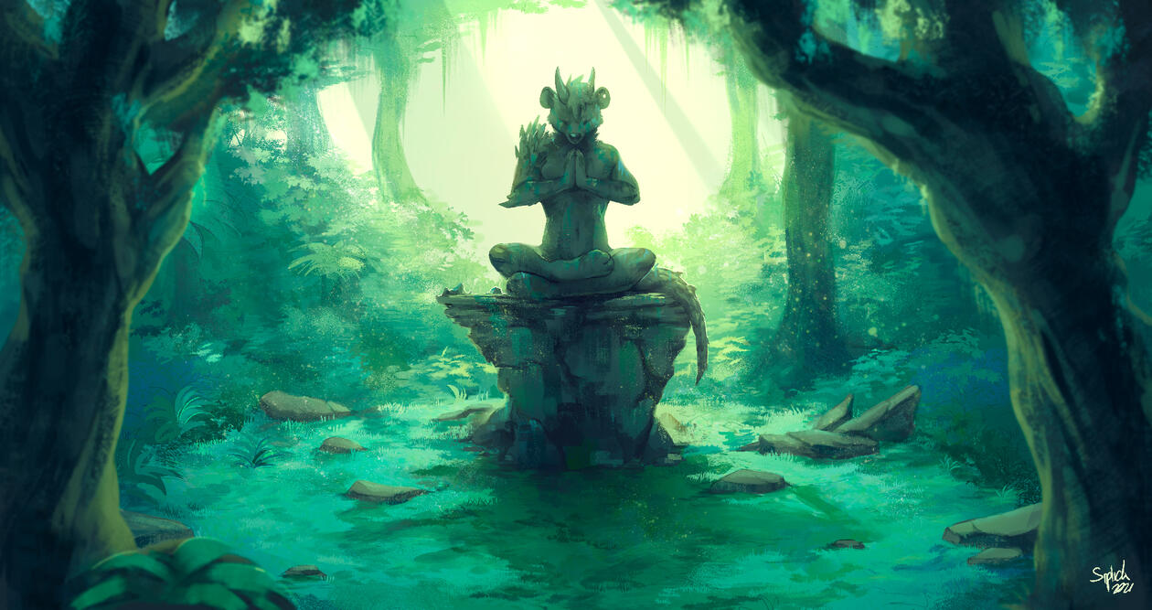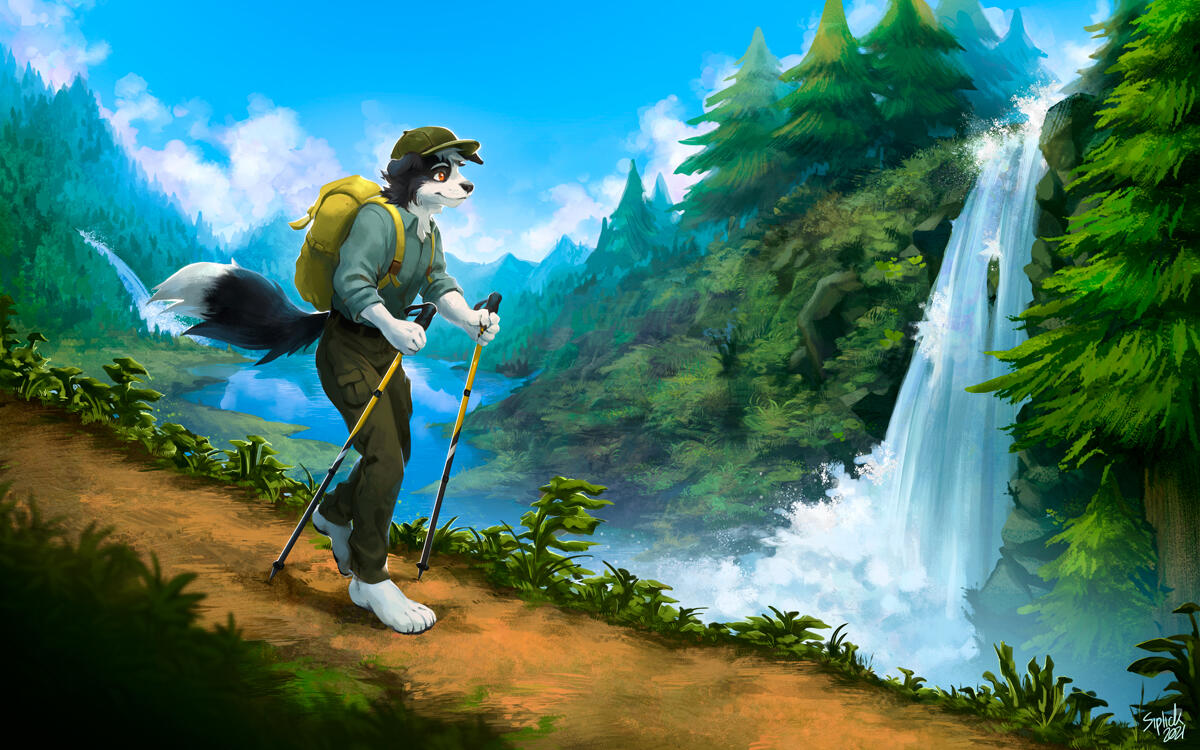 Illustrations that depict the full character on a nature background in a painterly style. They make great desktop backgrounds!